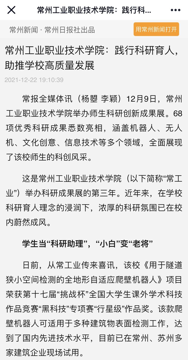 常州新闻-常州工业职业技术学院:践行科研育人,助推学校高质量发展