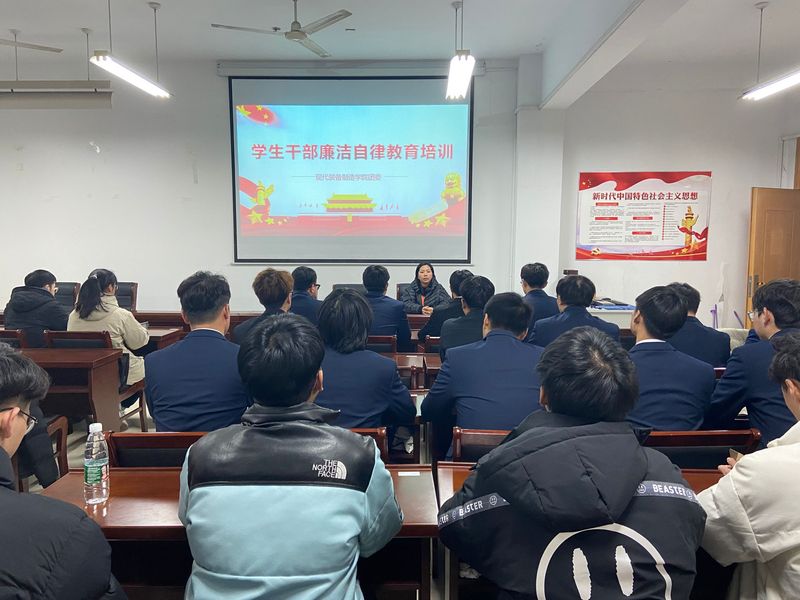 为进一提高学生干部廉洁自律意识,激发学生干部队伍廉洁担当活力,增强为同学们服务的能力,12月23日,现代装备制造学院开展学生干部廉洁自律教育培训,培训主讲人是现代装备制造学院分团委书记冯莉,全体学生干部参加本次培训会。