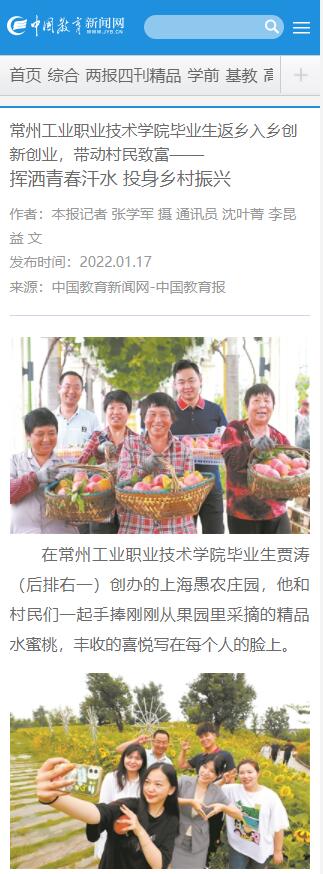 中国教育新闻网-常州工业职业技术学院毕业生返乡入乡创新创业,带动村民致富——挥洒青春汗水 投身乡村振兴