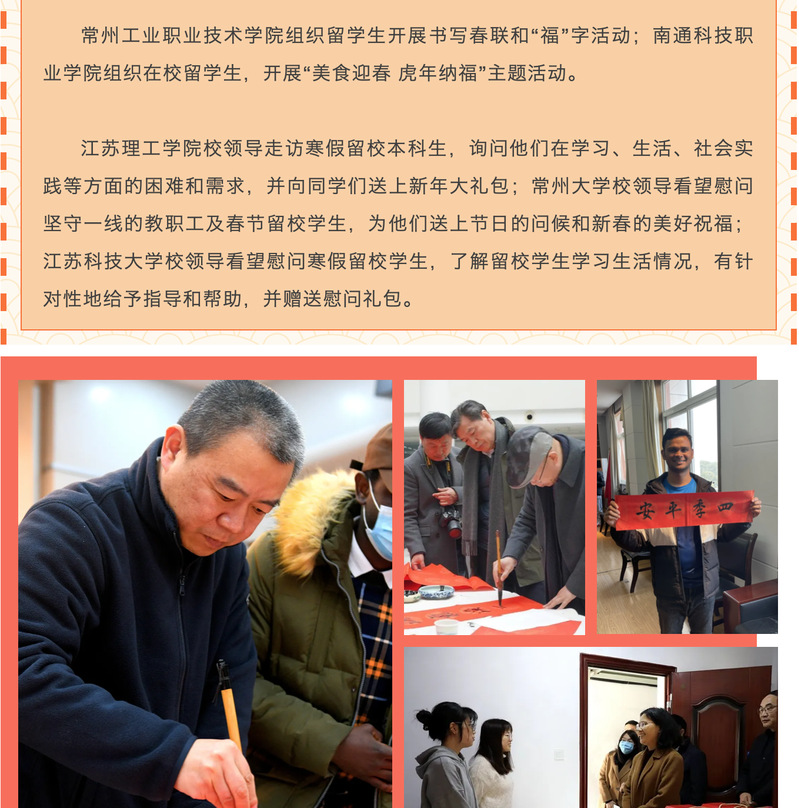 江苏教育发布-常州工业职业技术学院组织留学生开展书写春联和“福”字活动