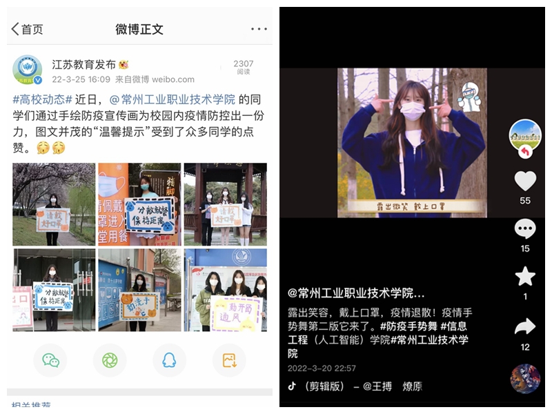 “露出微笑,戴上口罩,疫情退让!”信息工程学院团委学生会的同学们为抗击疫情积极行动,他们学习并拍摄了抗疫手势舞、绘制了抗疫“温馨提示”宣传标语,收集展示春日美好的校园照片,通过分享同学们在疫情期间的美好瞬间,引导大家以积极心态面对疫情,用微笑面对人生。他们的行动赢得了众多同学的点赞。