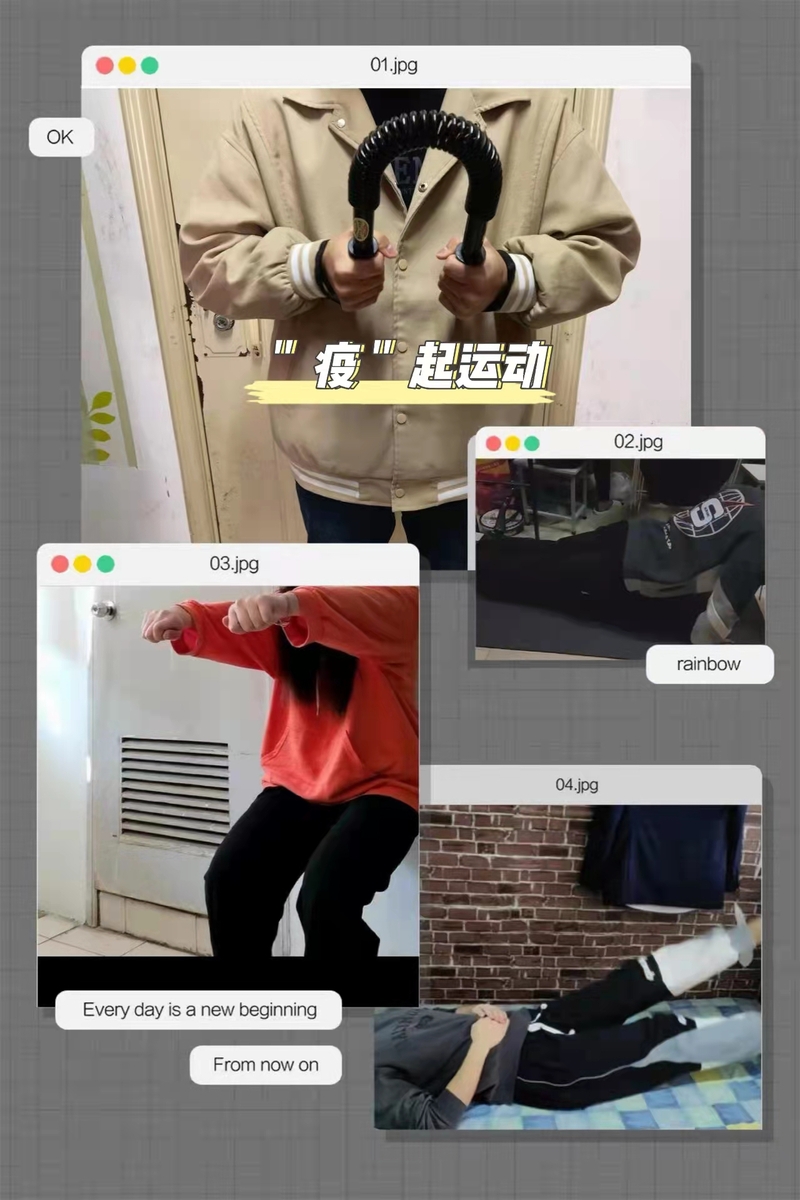 开展“疫”起运动主题活动。本次活动广受学生的支持,许多学生在学校疫情防控期间,在寝室中坚持运动,在校园内散步走动、解放身心,营造了积极健康的生活氛围。