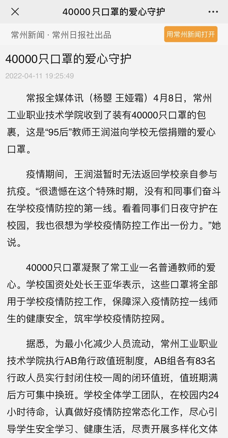 常州新闻-40000只口罩的爱心守护