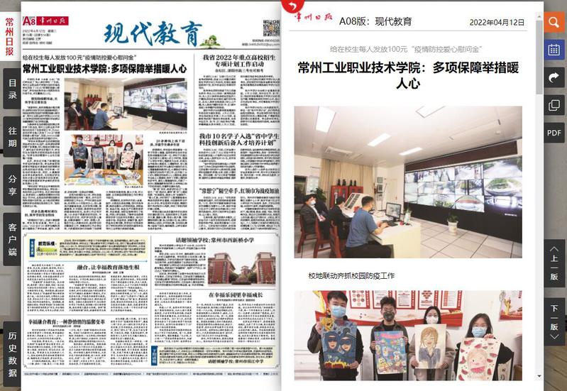 常州日报-常州工业职业技术学院:多项保障举措暖人心