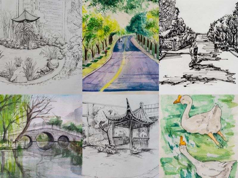 书情画意,歌颂青春。为了充分发挥学生的专业特长,提升学生文化素养,艺术创意学院近期还组织开展了“擘画青春,绘梦校园”书画作品征集大赛,同学们通过手中的画笔,描绘出一幅幅校园美景。校园景观、文化长廊、可爱的小动物们都成了作品中的主角。有的画作展开丰富想象,借由画作描绘心情。本次活动的开展,培养了学生们认识美、体验美、感受美、欣赏美和创造美的能力。