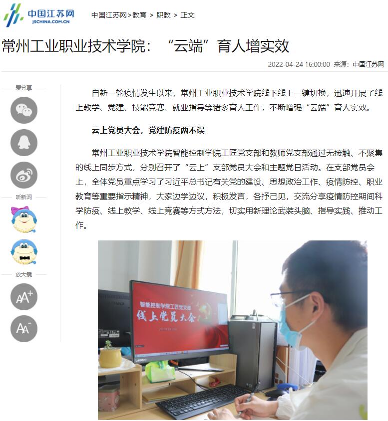 中国江苏网-常州工业职业技术学院:“云端”育人增实效