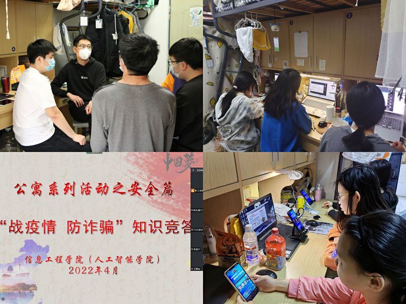 疫情期间,信息工程学院为进一步提高同学们的安全意识,增强广大学生自我保护和自我管理的能力,举办“‘疫’路有你,‘寓’你相伴”宿舍安全系列活动,从召开线上讲座、开展知识竞答、深入寝室一线三个方面,了解学生实际需求,筑牢宿舍安全防线。
