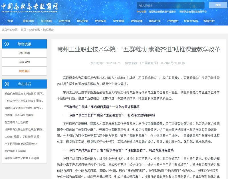 中国高职高专教育网-常州工业职业技术学院:“五群链动 素能齐进”助推课堂教学改革