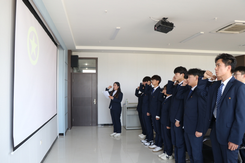 “初心不改,梦想不辍”新团员入团仪式。为营造“喜迎二十大”的青春氛围,加强新时期青年团员的意识教育,信息工程学院于5月2日举行了新团员入团仪式。入团仪式在嘹亮的国歌声中拉开序幕。姜婉老师宣读了今年新发展的34名团员名单,并为新发展的团员佩戴团徽。接着,学院团委副书记姚昕悦带领新团员进行宣誓,全体团员面向团旗,举起右手、握拳过肩,以最洪亮的声音庄严宣誓。新团员代表谢延延同学发言,她表达了自己加入共青团的荣幸与激动,并号召全体新团员要始终保持昂扬的精神状态,坚定信念,努力履行团员义务,继承和发扬共青团的优良传统,用实际行动展现青春风采。最终,入团仪式在师生齐唱《光荣啊!中国共青团》的歌声中落下帷幕。