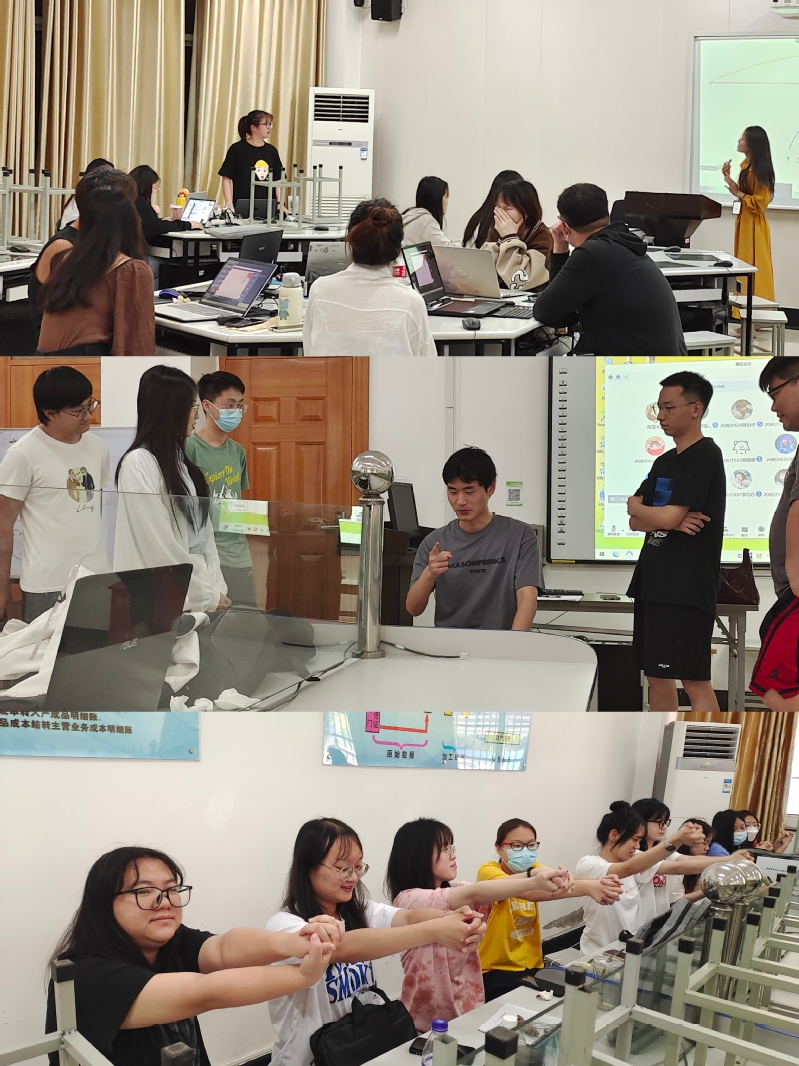 “自我关爱”团体辅导。陈雪老师采用心理游戏、心理健康知识讲解和小组交流等方式引导同学们互动,促使个体在团体互动中观察学习、沉浸式体验及探索自我。“四指抬人”的游戏中,四名同学各伸出一根手指将另一位同学抬起来,从一开始所有人觉得是不可能完成的任务,再到后来的相信不可能,同学们挖掘出自己无限的潜能。“双手交握”的互动中,引导同学们发现自己的潜意识,通过改善个人的双手交叉习惯,来觉知走出舒适区的心理状态。本次团体辅导活动在为同学们减压赋能的同时学会自我关爱,也提升了同学们的参与感和获得感,能以更好地心态来应对未来生活。