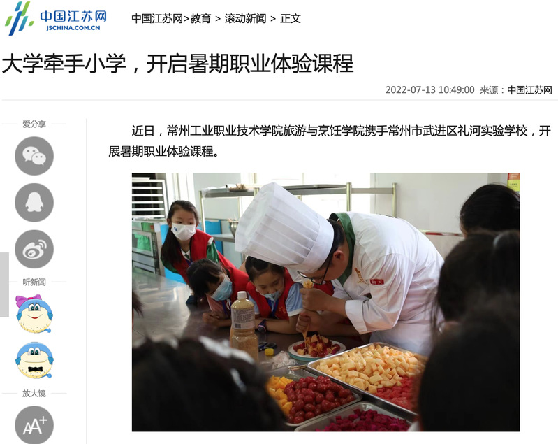 中国江苏网-大学牵手小学,开启暑期职业体验课程