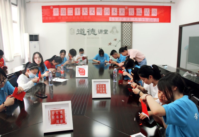 实际行动助力“双减”落地。7月15日,“小水滴”公益暑托实践团来到东方社区图书馆,开展了“喜迎二十大,文明向未来”手工剪纸活动。在老师耐心的讲解和指点下,大家很快学会了剪纸的基本技巧,来自幼儿专业的志愿者们用所学的手工专业知识,和小朋友们一同开启了一场剪纸之旅。寓乐于刀,寓教于纸,在剪刀与纸的碰撞中常州特色剪纸文化和红色教育也在实践中被孩子们进一步感知。7月21日,“小水滴”公益暑托实践团”和东方社区开展“手拉手,游青果”主题旅游活动,结合学院旅游专业特色,利用本地的文化资源,“小水滴”们和小朋友一对一结对携手讲述“江南名士第一巷”青果巷历史,寓乐于游,通过实地体验,介绍青果巷的历史文化,让孩子们在游玩实践中进一步了解家乡浓厚的人文历史,做推广家乡旅游的“小小代言人”。