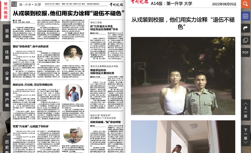 常州晚报-从戎装到校服,他们用实力诠释“退伍不褪色”