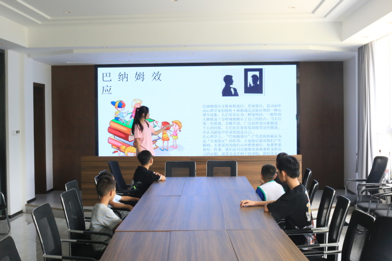 青仔公益暑托班支教大学生宗建娜用演讲和视频形式和小朋友们共同回顾了2022冬奥盛事。宗建娜表示,18岁谷爱凌“一飞冲天”获得自由式滑雪女子大跳台金牌,17岁的苏胡鸣“一鸣惊人”为中国队创造历史最好成绩……他们向全世界展现了当代中国青年的精神之美、拼搏之美和奋斗之美。宗建娜号召,我们要像冬奥健儿那样,做“强国有我”一代新人,把小我融入祖国的大我、人民的大我之中。支教大学生张军洁为小朋友们带来一堂心理成长体验课。通过巴纳姆效应、投影效应等小知识的讲解,张军洁帮助小朋友们更好地了解自己,学会做友善、温暖、真诚的人,学会与他人分享、合作,学会自我评价。课堂上,小朋友们积极发言,讲述自己心中梦想,以及为了梦想今后努力的方向。