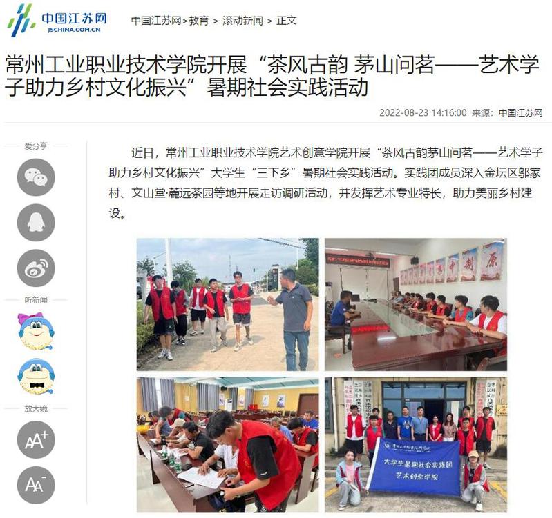 中国江苏网-常州工业职业技术学院开展“茶风古韵茅山问茗——艺术学子助力乡村文化振兴”暑期社会实践活动