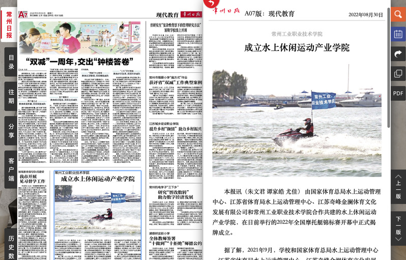常州日报-常州工业职业技术学院成立水上休闲运动产业学院