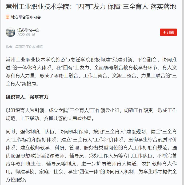 学习强国-常州工业职业技术学院:“四有”发力 保障“三全育人”落实落地