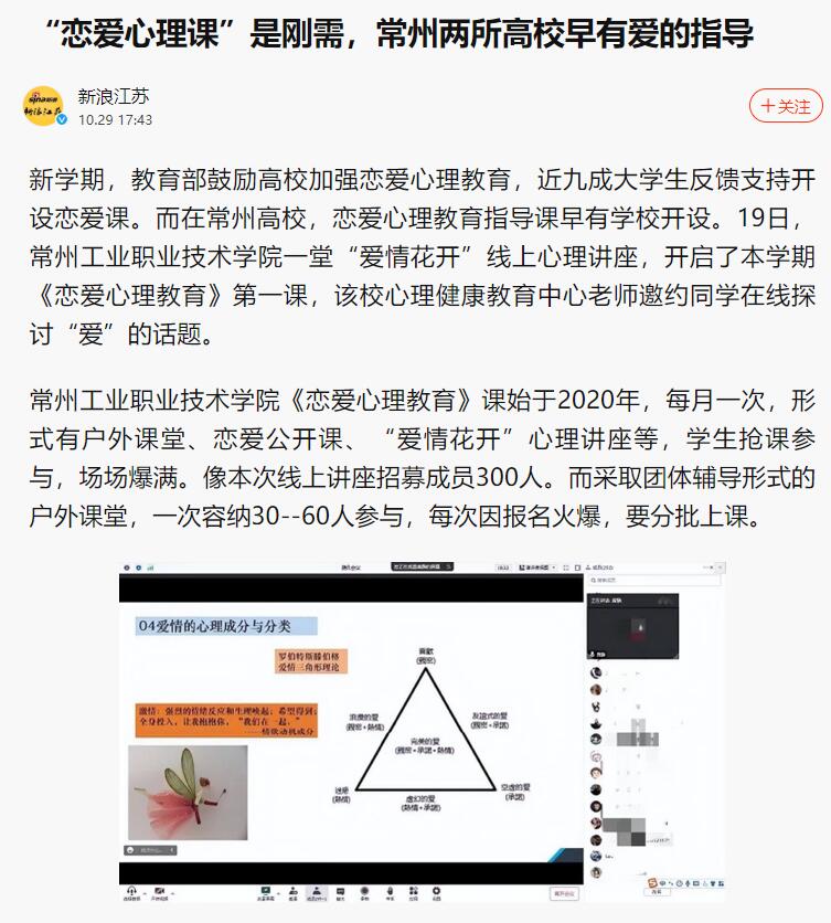 新浪江苏-“恋爱心理课”是刚需,常州两所高校早有爱的指导