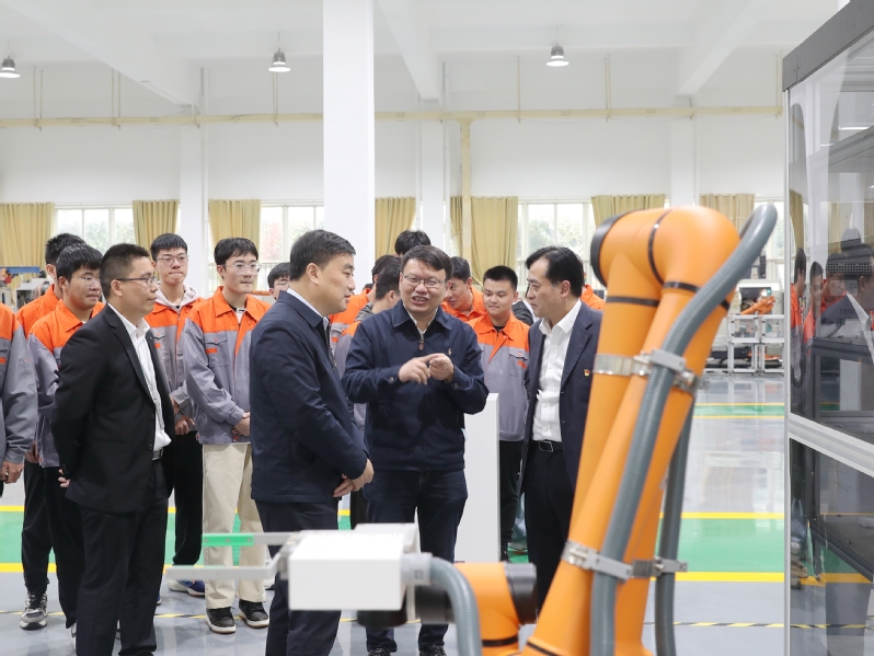 10月28日,党的二十大代表、黑牡丹集团技术总监、我校校友邓建军参观学校智能制造工程中心,与现场师生亲切交谈。我校党委书记席海涛、校长杨劲松陪同参观。