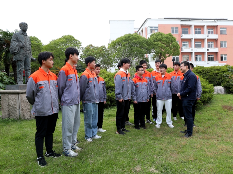 听到学生的提问,邓建军停下脚步驻足思考了片刻,同学们也不由围聚到他身边。他们身后,年轻的建军像矗立一旁,静静凝望着匠心的种子在更多年轻学子的心中生根发芽。