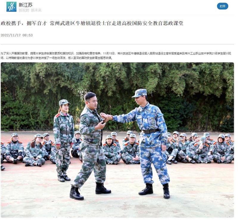 新江苏-常州武进区牛塘镇退役士官走进高校国防安全教育思政课堂