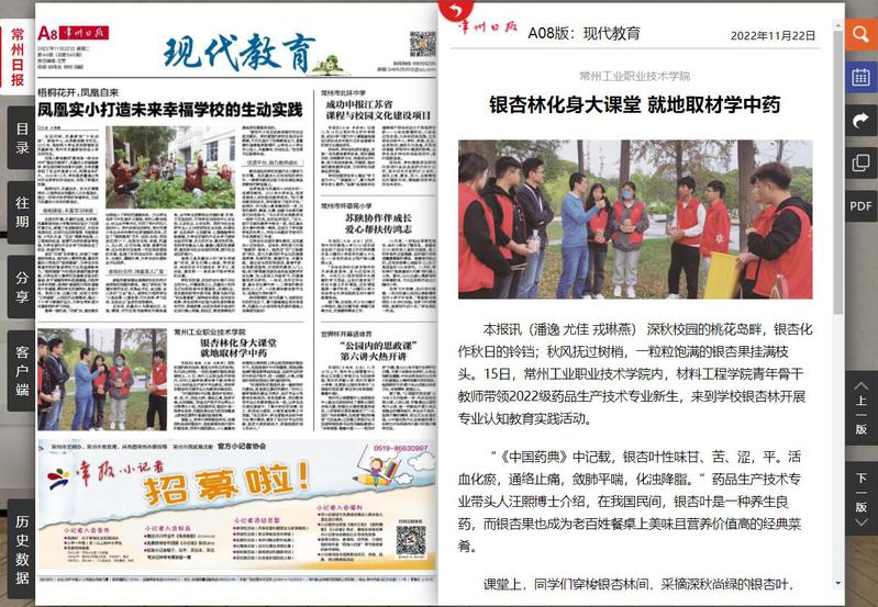 常州日报-常州工业职业技术学院银杏林化身大课堂 就地取材学中药
