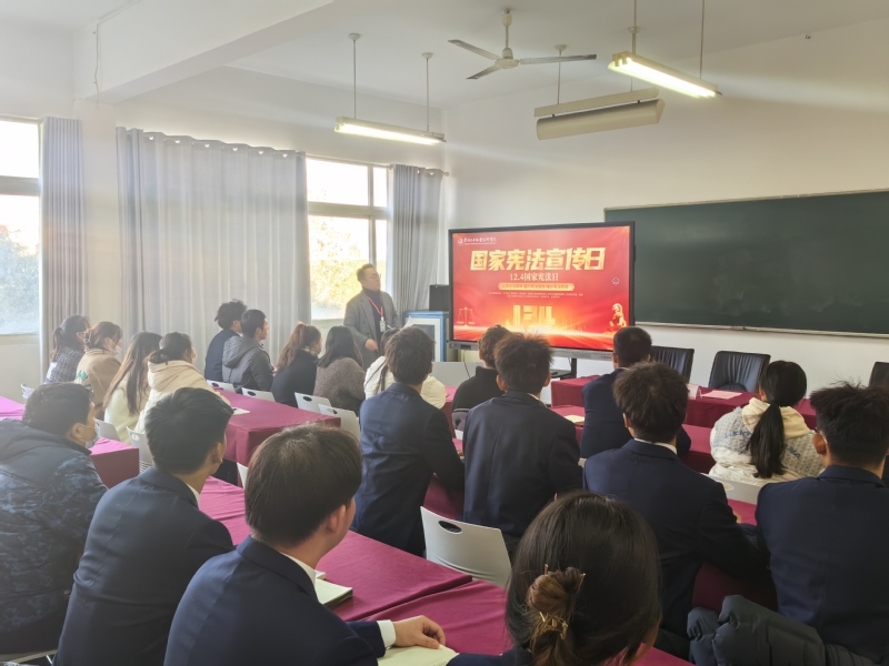 宪法讲座学宪法。12月4日是国家宪法宣传日,轨道交通学院组织全体入党积极分子和共青团员代表汇聚云端同步参与“筑法治之基、行教育之力、积安全之势、保师生平安”信仰公开课主题教育实践活动。周振老师带领普法宣讲团,结合党的二十大报告“法治”相关内容,结合实地参观新北区人民法院在审判执行、司法保障、扫黑除恶、未成年审判、智慧法院建设、“灯塔萌”一站式法律志愿服务中心等方面的所得所悟,为学生开展法治知识宣讲。