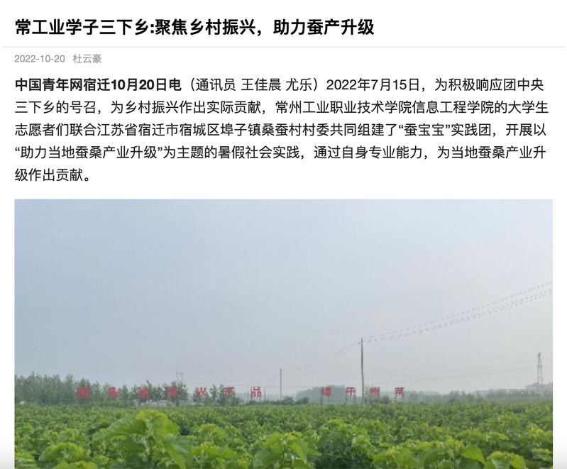 中国青年网-常工业学子三下乡:聚焦乡村振兴,助力蚕产升级