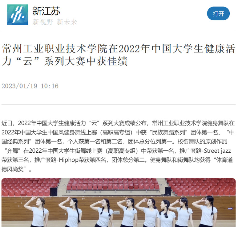 新江苏-常州工业职业技术学院在2022年中国大学生健康活力“云”系列大赛中获佳绩
