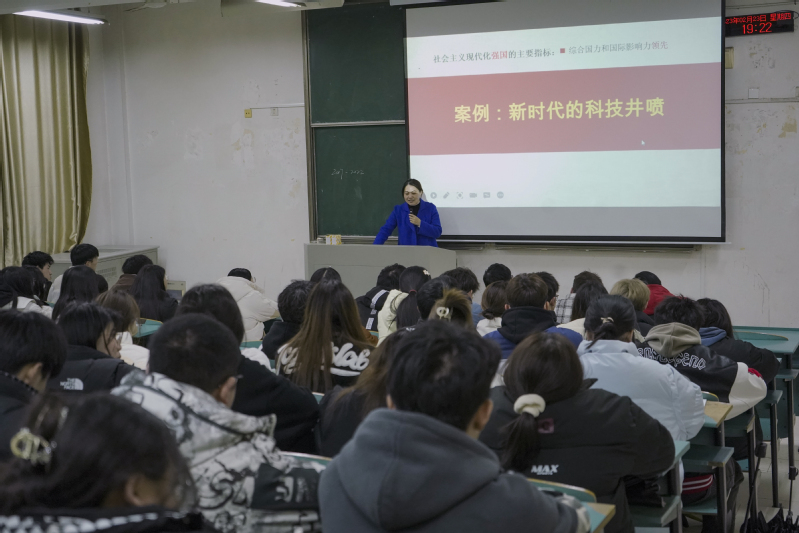 凌烨丽围绕“全面建成社会主义现代化强国的战略部署和重大举措”为主题,向同学们讲述了全面建成社会主义现代化强国的战略安排和关键节点,带领同学们深刻领悟当代青年的时代责任和历史使命。结合当前我国发展取得的各项重大成就,鼓舞同学们要树立为全面建设社会主义现代化国家、全面推进中华民族伟大复兴而团结奋斗的信心和决心,勉励同学们要用党的科学理论武装头脑,夯实专业理论基础、增长知识才干,在实现中国梦的新征程上踔厉奋发、勇毅前行,争做有理想、敢担当、能吃苦、肯奋斗的新时代青年!