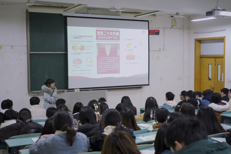 刘芳芳围绕“凝聚新思想 奋进新时代 迈向新征程”为主题,向同学们讲述了党的二十大筹备召开的全过程,共分为四个阶段:会前准备阶段,会前预备阶段,会中召开阶段,会后公报阶段。刘芳芳带领同学们深刻领会党的二十大的精神内涵和重要意义,加深了同学们对习近平新时代中国特色社会主义思想、马克思主义中国化时代化以及中国式现代化等重大命题的认识,引导同学们坚定不移听党话、跟党走,鼓励大家坚定理想信念,脚踏实地,要将个人理想与国家发展紧密结合起来,用实际行动为实现中华民族伟大复兴贡献青春力量。