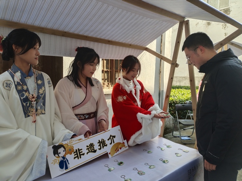 2月27日,农历二月初八,“古韵杨桥·庙趣缤纷”第十二届杨桥庙会文化节在前黄镇杨桥村盛大开锣,“杨桥庙会”是江苏省非物质文化遗产,已有千年传承。本次活动由中共武进区前黄镇委员会和武进区前黄镇人民政府主办,旅游与康养学院受主办方邀请,组织了53名志愿者参与到非遗汉服巡会、新时代文明实践以及经典诵读等活动。自2022年起,学院与前黄镇杨桥村通过党团共建,开展深度合作交流。学院师生团队先后十余次深入杨桥古镇开展传统建筑组群的调研走访、参观地下红色交通站等党日活动,还化身引导员为游客讲解杨桥老街的一砖一瓦,传递爱护文物、保护文物的理念,用实际行动助力乡村振兴。本次庙会文化节志愿服务从报名启动到正式参与,青年学子们踊跃报名参加,在实践活动中体验到中国优秀传统文化的精髓,不仅传承了非遗文化,也彰显出新时代的雷锋精神。