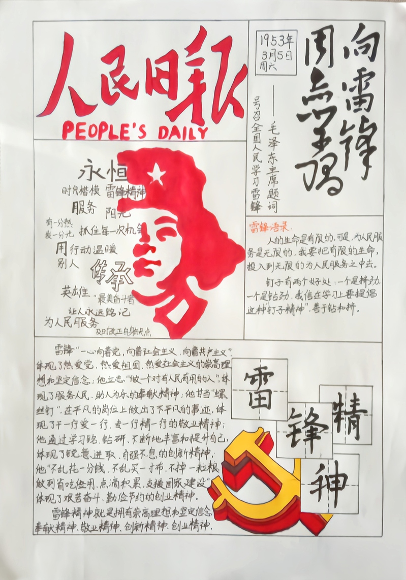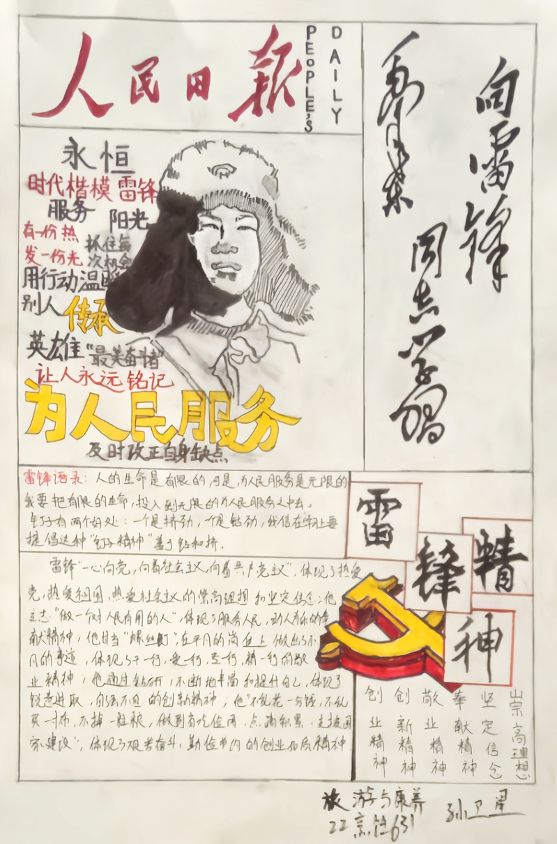 学院以3月5日“雷锋日”为契机,结合主题班会、信仰公开课等形式开展“寻找身边的青年雷锋”等活动,并结合专业,精心设计开展“学雷锋”主题教育手抄报活动,后期将通过微信公众号等形式进行展播。通过开展一系列活动,不仅让学生切实感受到雷锋精神在我们身边,更有效地调动了学生参与志愿服务工作的积极性,引导和带动了青年学子们提升自身素质,体验到了服务他人的快乐。