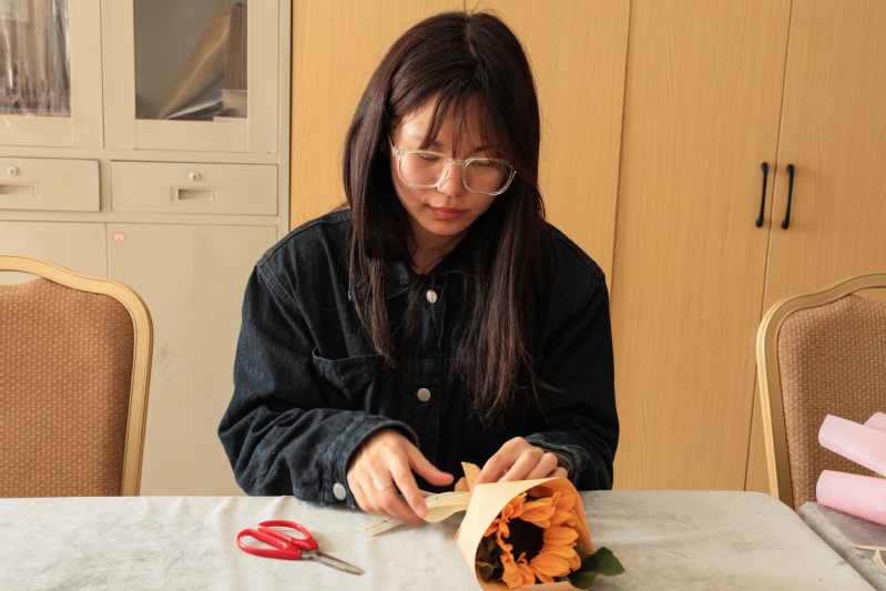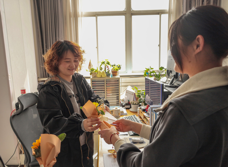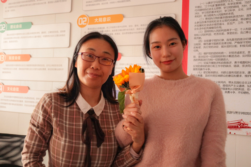 学院青年学子亲手制作鲜花、写下祝福的贺卡,学院分工会主席龙慧和学生在这个特殊的节日里一起给女老师和宿舍阿姨送上节日祝福。同时,同学们还开展“我想对你说”活动,鼓励同学们给妈妈打电话、拍视频、写信来表达自己对母亲的爱和关心,勇敢说出自己的心声。
