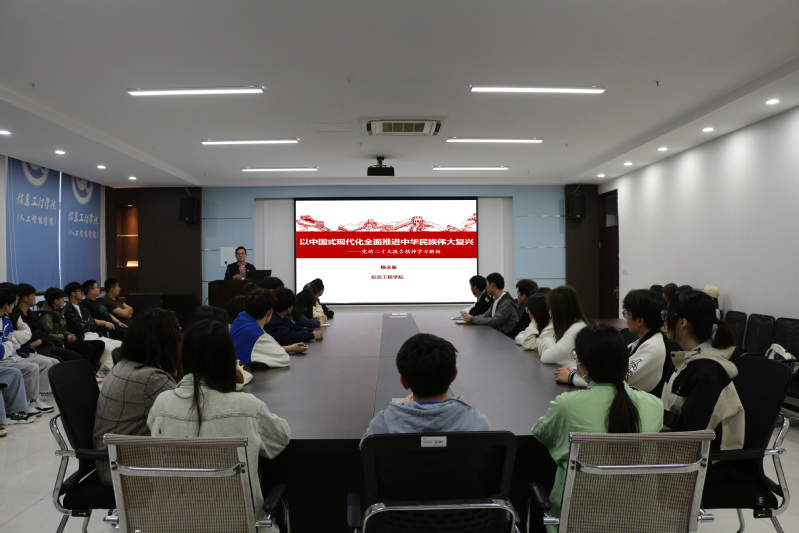 为进一步教育引导广大学生干部把思想和行动统一到党的二十大作出的重大决策部署上来,3月9日,信息工程学院在图文楼613开展学习贯彻党的二十大精神宣讲会,邀请学校党的二十大精神师生宣讲团成员、信息工程学院辅导员顾永振作《以中国式现代化全面推进中华民族伟大复兴》理论宣讲。学院辅导员、学生干部代表参加了本次宣讲会。