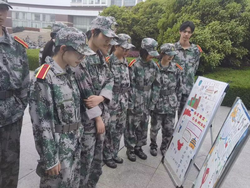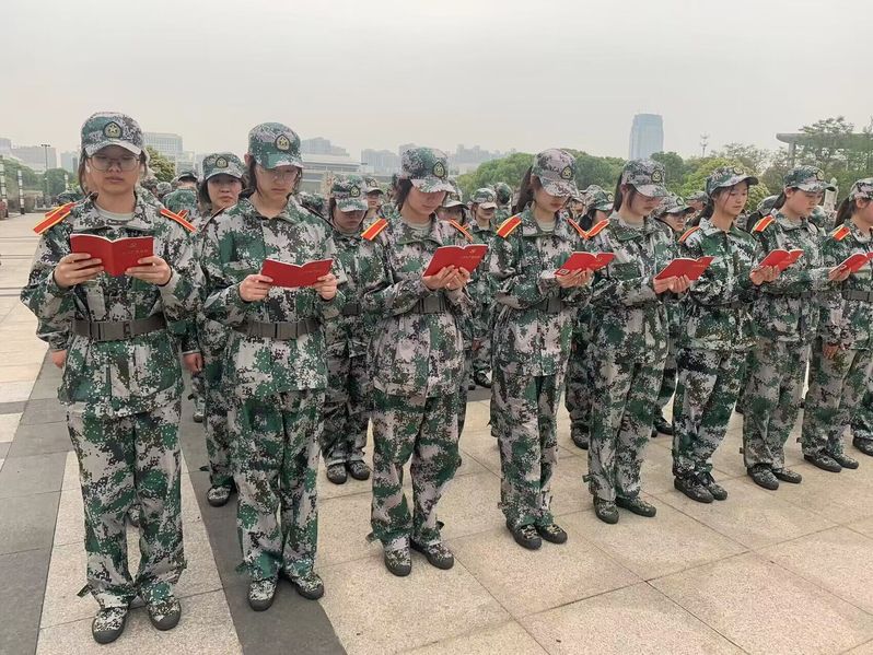 本次党史学习教育充分利用军训线下场景优势,将军训现场变成鲜活的党史学习大课堂。军训场地上,参训同学集中诵读中国共产党章程“中国共产党是中国工人阶级的先锋队.....”,铿锵有力的诵读声回荡在军训场地上,蓬勃的青春与家国同频共振,绿色的军训服与红色的党章读本交相辉映,使得党史教育更加生动鲜明。
