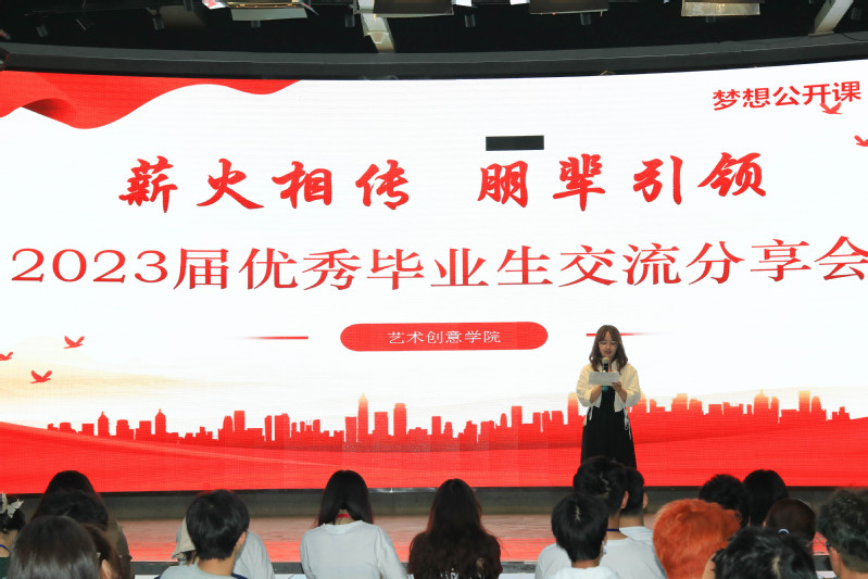 时光荏苒,岁月如梭,又是一年毕业季。2023届毕业生即将离开母校,怀揣梦想踏上新的征程。为了充分发挥优秀毕业生的榜样示范引领作用,帮助在校学生明确学习奋斗目标,深入推进艺术创意学院优良学风建设,5月29日,艺术创意学院团委邀请2023届优秀毕业生代表走进学院梦想公开课,开展“薪火相传,朋辈引领”优秀毕业生经验分享会,21级、22级各专业的部分学生参与了本次梦想公开课。