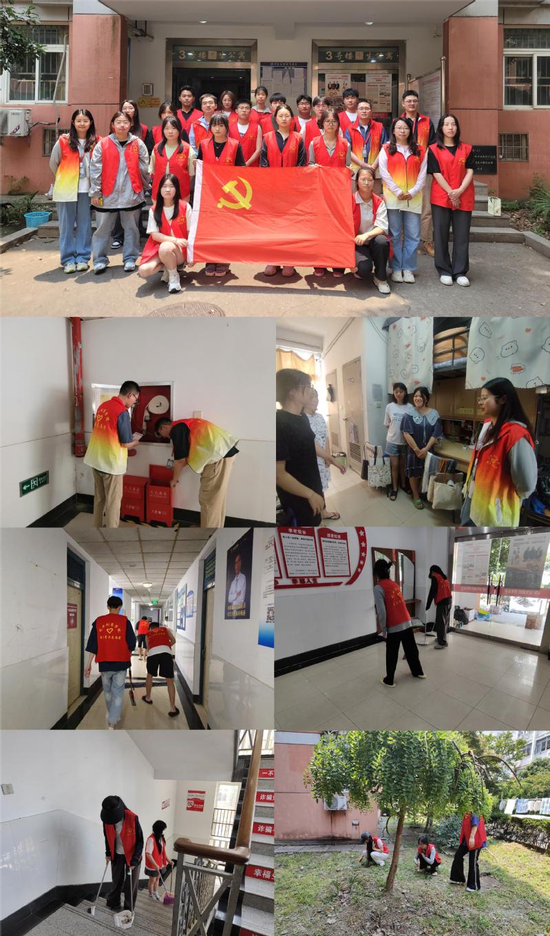 随后,支部全体师生积极响应走进学生社区,按照分组纷纷投身不同的劳动实践岗位,包括公寓楼外草坪和道路清理,公寓内大厅、茶水洗衣间和楼道打扫,帮助同学一起打扫宿舍,公寓楼安全设施检查等。师生们拿起清扫工具,合理分工、干劲十足、不遗余力,不放过任何一个死角,忙碌的身影构成了校园一道亮丽的风景线。在师生党员和积极分子的辛勤劳动下,学生社区的生活和学习环境得到进一步提升,同时此举还得到了宿管阿姨和同学们的一致好评。