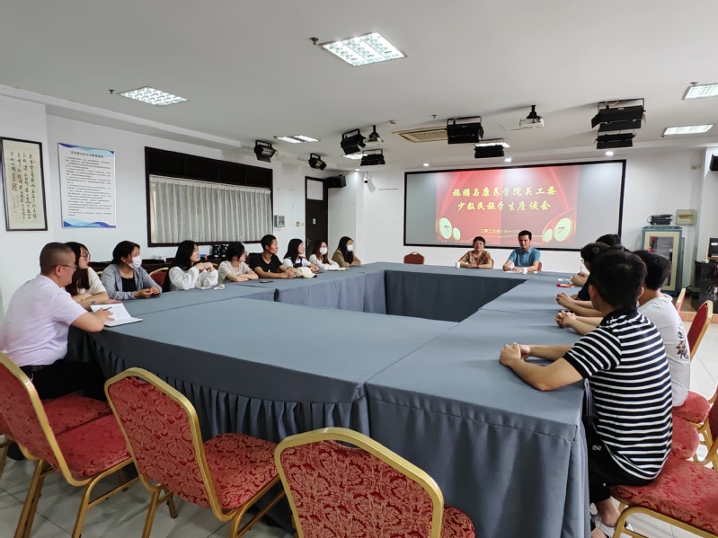 为铸牢中华民族共同体意识,及时关心少数民族学生当前思想动态及学习生活情况,呈现旅游与康养学院“亲情一家人”的学院文化。近日,旅游与康养学院组织召开“亲情一家人”少数民族学生交流会,关工委委员侯志燕、学生党支部书记尹奎、全体辅导员及21、22级少数民族学生代表参会。
