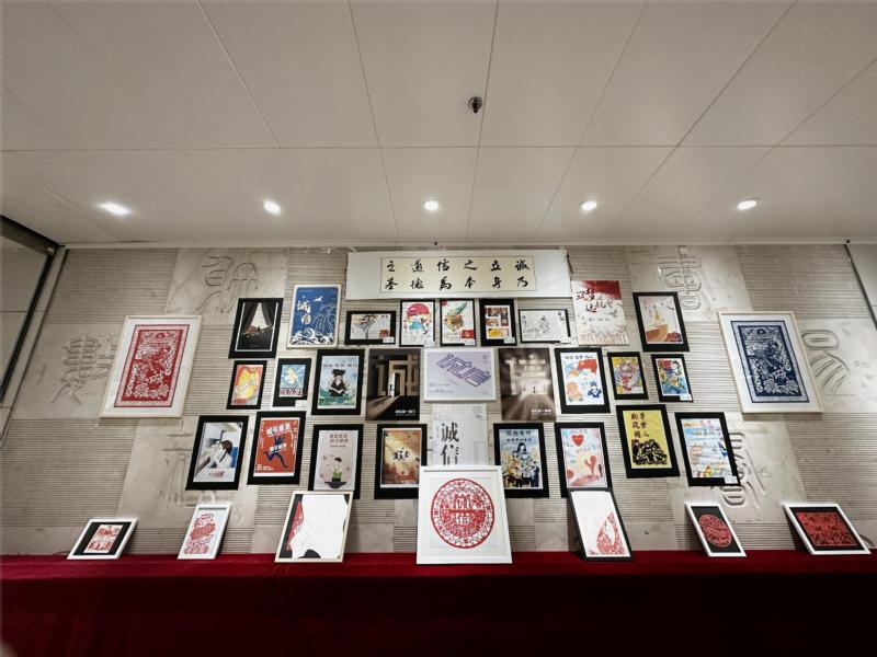 本次书法海报作品展分为书法作品展区、海报及刻纸作品展区、彩绒画及烙画作品三大展区:书法作品遒劲有力,海报作品设计精妙,刻纸作品意蕴古朴,彩绒画作品气势恢宏……一幅幅精美的艺术作品吸引了众多师生驻足观看,并不时相互讨论。作品展以一种全新的形式使师生们在观赏中深刻理解诚信教育的内涵。