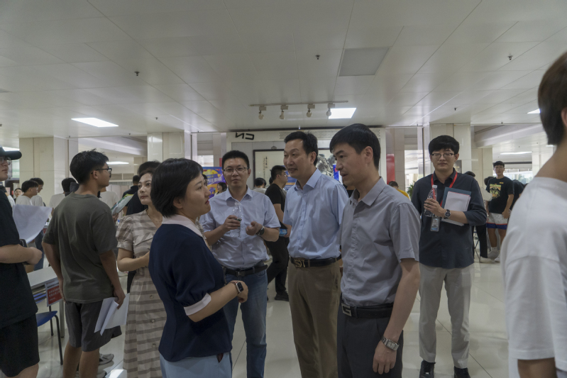 校长杨劲松,副校长姚庆文、吴丽云亲临现场,驻足在每个企业面前,与企业代表和学生亲切交流,了解用人单位需求、招聘进展和学生简历投递情况。