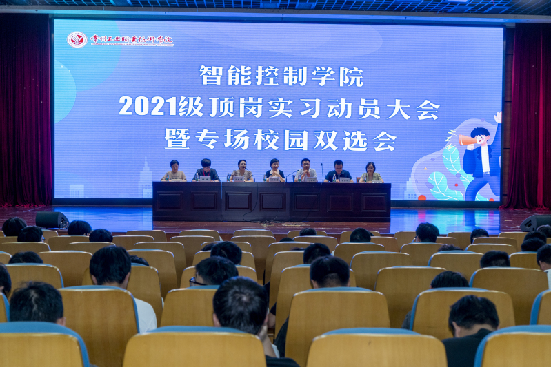 为扎实开展学习贯彻习近平新时代中国特色社会主义思想主题教育,落实中央经济工作会议提出关于高校毕业生就业工作的相关要求,深化校企党建共建,持续推进校企协同育人,助力学生顶岗实习,促进毕业生高质量就业。智能控制学院于7月5日召开了2021级学生顶岗实习动员大会暨专场校园双选会。智能控制学院党总支副书记麻丽娟、教务处副处长丁华峰、党总支副书记涂艳群、副院长蒋金伟、分团委书记陈曦、年级辅导员以及2021级全体学生参加了会议。会议由党总支副书记涂艳群主持,会议分两阶段进行。