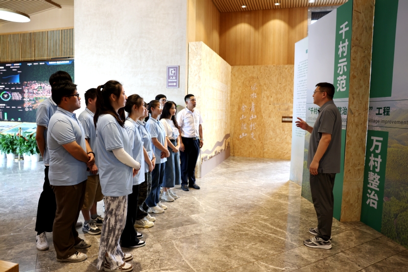 习近平总书记指出:“要把课堂学习和乡村实践紧密结合起来,厚植爱农情怀,练就兴农本领,在乡村振兴的大舞台上建功立业,为加快推进农业农村现代化、全面建设社会主义现代化国家贡献青春力量。”为进一步引导我院学子关注乡村振兴、增强服务“三农”的使命感和责任感,鼓励更多同学积极投身乡村振兴的伟大实践。7月6日,由校团委副书记苏周媛,我院党总支副书记缪双明,指导教师王明志博士、刘裕章老师以及数十名学生组成的 “千万工程”探寻实践团,前往浙江省湖州市安吉县余村和鲁家村开展实地调研,探寻“千万工程”实施二十年来,安吉县乡村从“穷山沟”到“绿富美”的发展密码。