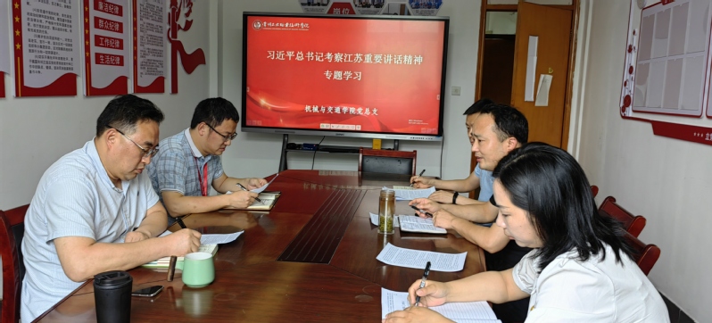 7月13日,机械与交通学院党总支开展理论学习中心组学习研讨,专题学习习近平总书记考察江苏重要讲话重要指示精神,聚焦高质量发展中心工作,开展专题研讨,交流学习体会,研究谋划落实措施。
