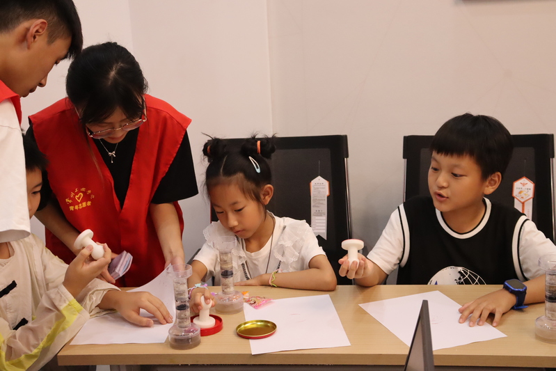 实践团走进南大街街道广化桥社区,开展“运河之水不息,文明之举不断”老城厢大运河生态环境保护活动。本次活动面向社区青少年儿童开展,包含净水实验、净滩行动、运河文化传承与保护主题讲座等主题实践活动,让青年了解运河的历史及其对常州等地起着不可或缺的作用,提高其运河保护、水系治理等方面专业水平。活动过程中,实践团成员李鹏鹏、王圣楠通过主题宣讲向青少年普及水循环的相关知识,讲解净水基本原理,带领小朋友们开展净水实验,感受科学魅力。