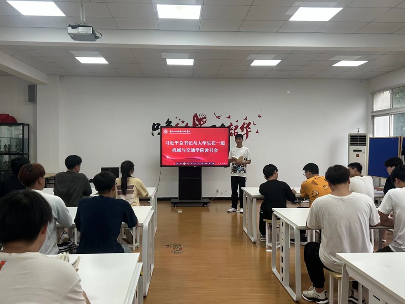 为深入开展学习贯彻习近平新时代中国特色社会主义思想主题教育,贯彻落实教育部“习近平总书记与大学生在一起”学习分享活动部署要求,7月24日,机械与交通学院组织开展学生读书会,青年学生共读《习近平新时代中国特色社会主义思想》和《习近平与大学生朋友们》等书,分享读书感悟。