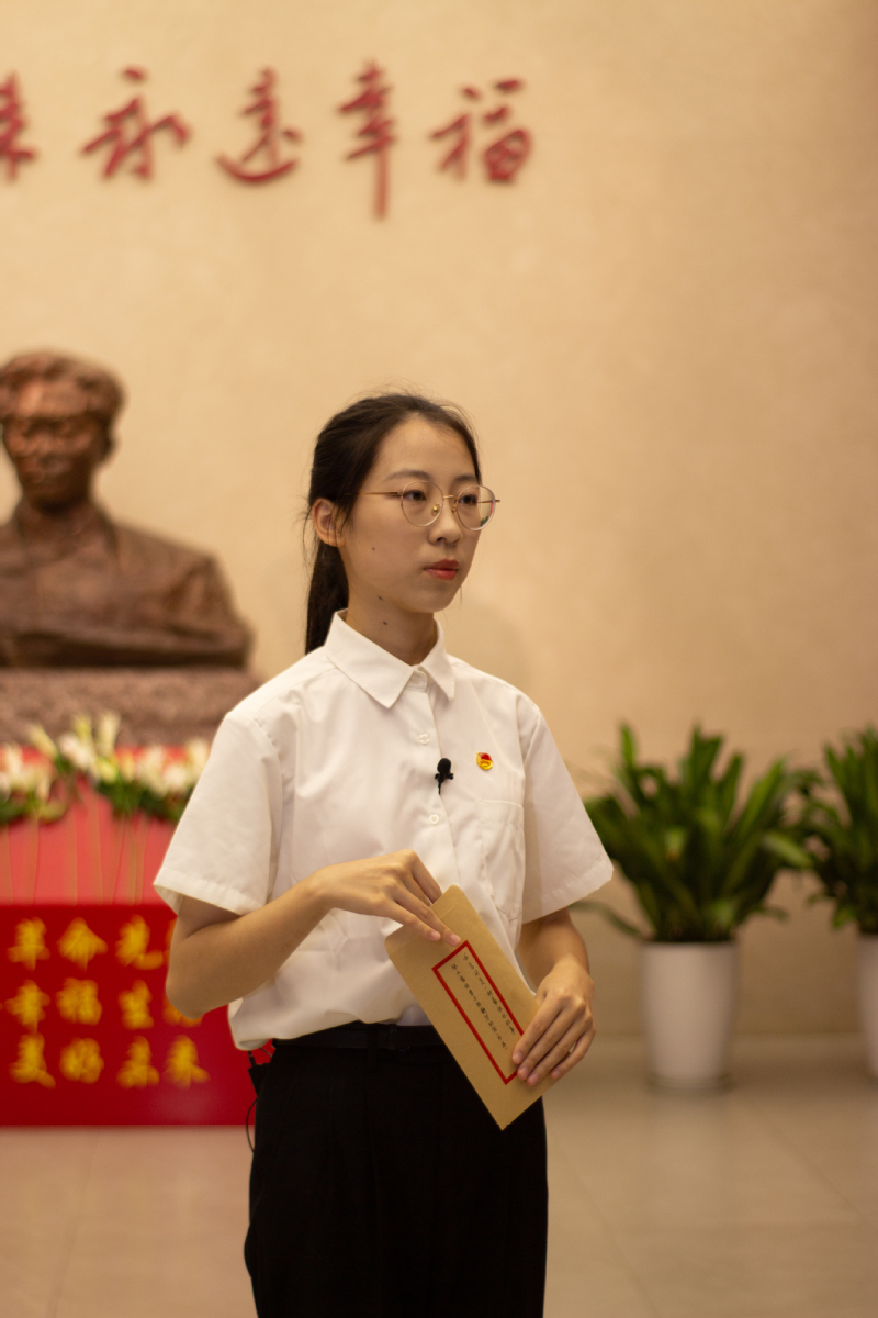 首先,指导教师陈杰以“思政微课堂”给大家讲述了红色家书和红色家风的丰富内涵。接着,团队成员高佳怡和张恒瑞诵读两封红色家书,并讲述了家书背后的故事。其次,由学生以收到家书之人的身份和口吻,撰写“跨越时空的回信”。