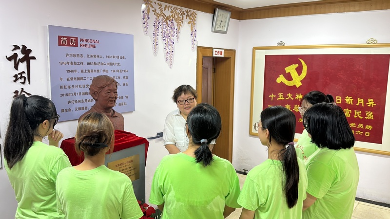 为了做好社区调研工作,队员们参观了许巧珍工作室,希望学到社区工作的有益经验。许巧珍生前被誉为“小巷总理”“红衣奶奶”,她忠于职守、一心为民且乐于奉献。她用自己的一生诠释着作为一名社区工作者的职责与担当。带着极大的敬意,队员们认真学习了许书记的“七+”社区工作法。他们表示要向许书记学习,按照“七+”工作法来开展社区调研,力争使调研出成果,总结进一步推进常州全民生态文明教育的可行性方案,并进行推广。