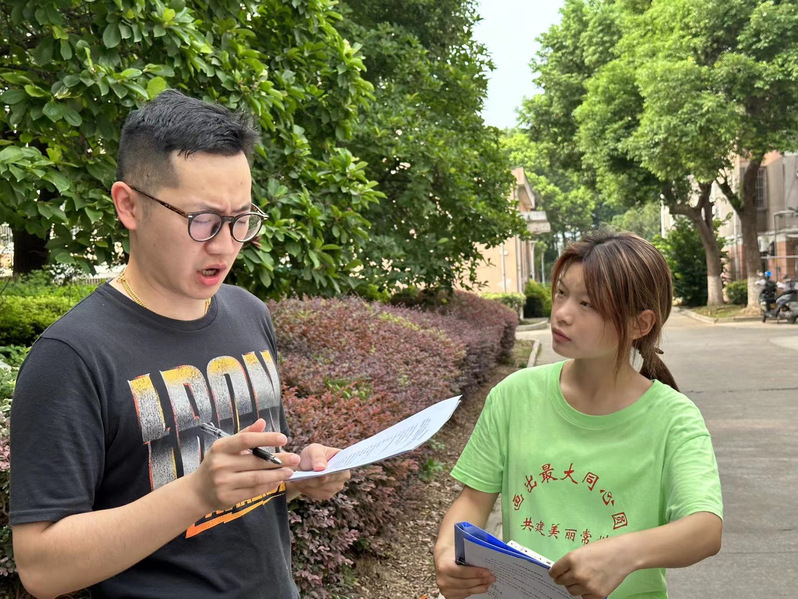 队员们分成小组进社区调研。宣讲组成员向小区居民发放人与自然和谐共生的现代化及生态文明法治宣传手册,并向他们宣讲党的二十大关于生态文明建设的思想。访谈组成员围绕碳达峰碳中和、美丽常州建设等相关问题,通过线上线下相结合的方式进行调研,同时展开对居民的深度访谈。在宣讲、调研和访谈过程中,队员们从居民的衣、食、住、行等日常生活方式谈起,和居民拉家常、讲道理,畅聊垃圾分类、减碳减排等绿色环保问题。居民们都认为,大学生到社区进行理论宣讲和科学知识普及是服务广大老百姓的有益实践活动。