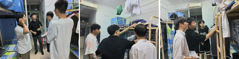检查过程中,两位老师带领学生干部重点对学生宿舍的卫生情况、水电安全、违规电器等情况进行详细摸排,同时与刚刚返校的各位同学深入交谈,了解假期生活情况和同学们的精神面貌。在7号男生公寓,周宇重点询问了同学们更换宿舍后的适应性情况,希望大家保持良好卫生习惯,尽快适应新环境,调整好状态投入到新学期的学习、生活中。在2号女生公寓,王姝娴亲切询问同学们的生活需求和目前宿舍存在的问题,认真了解同学们的假期生活和新学期的目标规划,鼓励同学们把握新学期,抓住新机遇,全面提升个人综合能力。